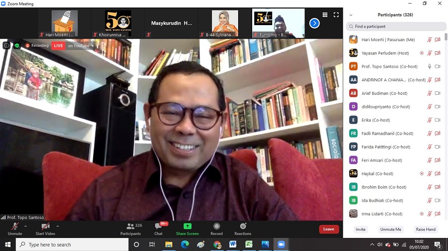 Berikut ini sebagian kutipan “Kata Mereka” tentang sosok Topo Santoso, yang dirangkum oleh Hari Moerti, Komisioner Bawaslu Kabupaten Pasuruan yang mengikuti acara melalui zoom meeting.