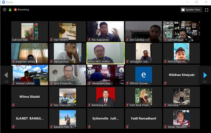 Kegiatan ini diselenggarakan oleh Komite Independen Sadar Pemilu (KISP) yang disiarkan melalui zoom, salah satu meeting apps. Hadir dalam pertemuan virtual itu sejumlah 80-an peserta dari berbagai daerah, termasuk Hari Moerti, Komisioner Bawaslu Kabupaten Pasuruan.