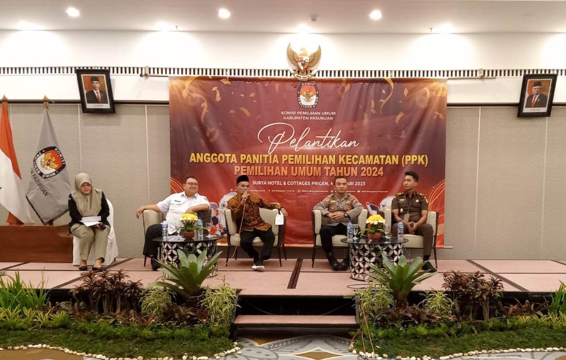 Kabupaten Pasuruan. Jajaran pimpinan Bawaslu Kabupaten Pasuruan menghadiri Pelantikan 120 Anggota Panitia Pemilihan Kecamatan (PKK) kabupaten Pasuruan pada Pemilu Serentak 2024, yang dilaksanakan oleh KPU Kabupaten Pasuruan di Semeru Hall, Surya Hotel & Cottage, Prigen. Rabu, 04 Januari 2022.