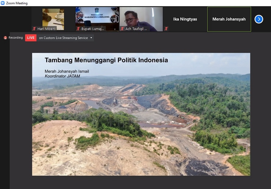 pasuruan.bawaslu.go.id – Surabaya. Aktor Pilkada tidak hanya Pasangan Calon dan Partai Politik, ada sejumlah aktor dibalik panggung. Hal itu disampaikan Merah Johansyah (Koordinator Nasional Jaringan Advokasi Tambang - JATAM), saat menjadi narasumber Publikasi Buku Pembiyaan Pemilu di Indonesia, dengan tema kalimat tanya, “Ada Tambang di Pilkada?”, pada Senin (08/06/2020).