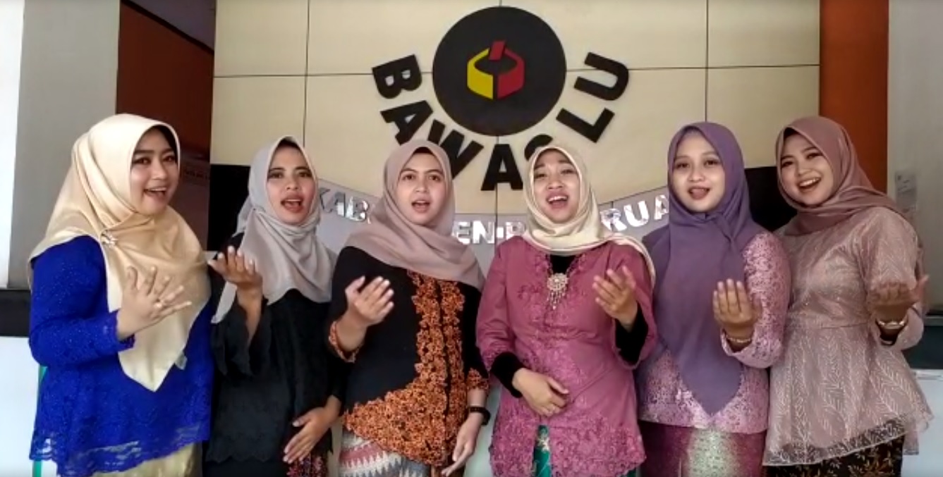 pasuruan.bawaslu.go.id – Pasuruan. Usai meresmikan ruang Laktasi (ruang ibu menyusui), Selasa siang (21/04/2020) segenap “Kartini” Bawaslu Kabupaten Pasuruan menyanyikan lagu Ibu Kita Kartini dengan sedikit modifikasi dan ditambah yel-yel Bawaslu yang juga sedikit dimodifikasi. Lantunan lagu heroik itu, mengambil posisi didepan meja resepsionis dengan berlatar belakang logo Bawaslu Kabupaten Pasuruan.