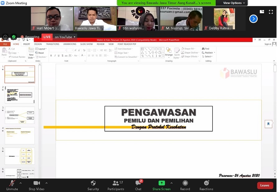 “ASN harus berhati-hati dalam bermedia sosial, misal meng-like medsos yang sifatnya mendukung paslon”, terang Aang di webinar Bawaslu Mendengar seri #5 dengan tema “Kemerdekaan Pengawasan”, yang diselenggarakan oleh Bawaslu Kabupaten Pasuruan dan juga disiarkan secara live streaming melalui YouTube channel Bawaslu Pasuruan. Webinar seri #5 ini dipandu oleh Titin Wahyuningsih, Komisioner Bawaslu Kabupaten Pasuruan, Rabu (26/08/2020).