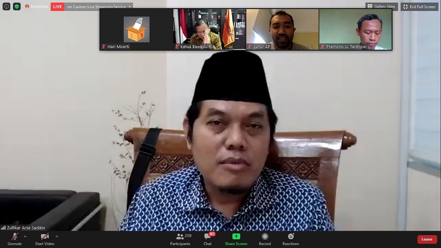 Dengan diterbitkannya Perppu No 2 tahun 2020, tentu dengan berbagai pertimbangan, yakni landasan filosofis, landasan sosiologis dan landasan yuridis. Sekarang fokusnya pada partisipasi pemilih dan kualitas penyelenggaraan, terang Zulfikar melalui Zoom Meeting.