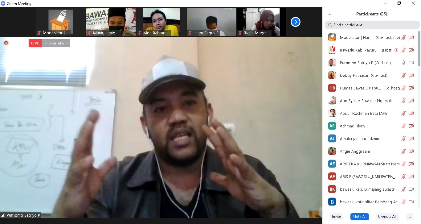 Webinar Bawaslu Mendengar seri #4, juga disiarkan secara live streaming melalui YouTube channel Bawaslu Pasuruan dan YouTube channel Bawaslu Jatim.