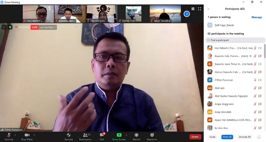 Itu disampaikan oleh Abu Amar Bustomi, rektor ITS NU Pasuruan dalam webinar Bawaslu Mendengar seri #5 dengan tema “Kemerdekaan Pengawasan”, yang diselenggarakan oleh Bawaslu Kabupaten Pasuruan dan juga disiarkan secara live streaming melalui YouTube channel Bawaslu Pasuruan. Webinar seri #5 ini dipandu oleh Titin Wahyuningsih, Komisioner Bawaslu Kabupaten Pasuruan, Rabu (26/08/2020).