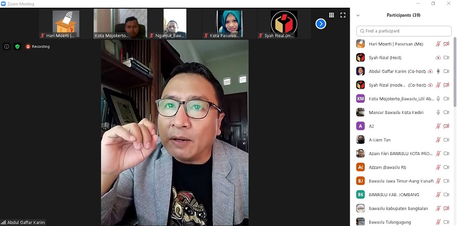 pasuruan.bawaslu.go.id – Jakarta. Tahapan penyusunan riset Pilkada telah memasuki presentasi Proposal kemudian dilakukan review dari tim pendampingan yang disiapkan oleh Bawaslu RI. Presentasi proposal riset Pilkada dari Provinsi Jawa Timur ini dilaksanakan secara daring pada, Senin (31/08/2020) siang.