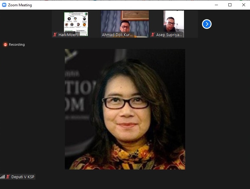 Salah satu narasumber yakni Jaleswari Pramodhawardani, Deputi V Kantor Staf Keprsidenen (KSP), Bidang Kajian dan Pengelolaan Isu-Isu Politik, Hukum, Pertahanan, Keamanan, dan HAM Strategis.