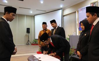 Ketua Bawaslu Kabupaten Pasuruan Arie Yoenianto melantik dan mengambil sumpah/janji penggantian antar-waktu (PAW) anggota Panwaslu Kecamatan Rejoso di Taman Dayu The Pavillion Pasuruan, bebarengan dengan acara bimbingan teknis “Penguatan Kelembagaan Pada Aparatur Pengawas Pemilu di Lingkungan Baw
