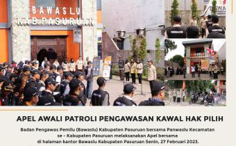 pasuruan.bawaslu..go.id - Bawaslu Kabupaten Pasuruan selama masa Tahapan Pencocokan dan Penelitian (COKLIT), terhitung 30 hari (12 Pebruari – 14 Maret 2023) Bawaslu Kabupaten Pasuruan telah instruksikan pada Panwaslu Kecamatan maupun Pengawas Kelurahan / Desa untuk lakuk